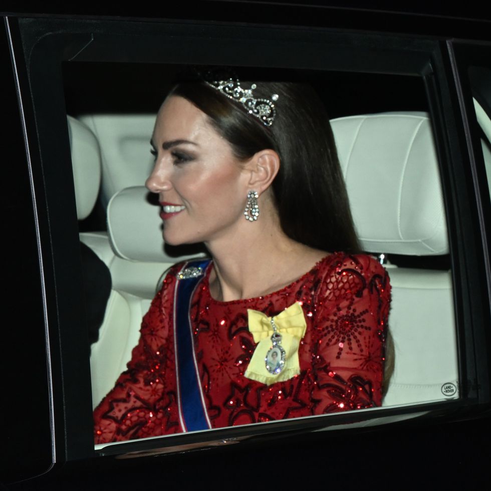Учитывая дресс-код ежегодного дипломатического приема, тиары являются обязательным условием для королевских особ, и в 2019 году Кейт Миддлтон решила дополнить свой образ (бархатное платье McQueen) тиарой Lover’s Knot.