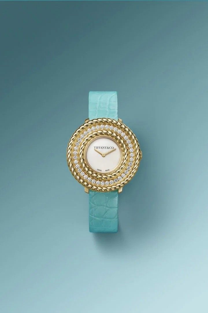 Часы выполнены в элегантном, неподвластном времени дизайне с концентрическими кругами. Модель представлена в 18-каратном желтом золоте с возможностью выбора белого перламутрового или глянцевого черного циферблата. Широкий безель, окружающий циферблат, подчеркивается двумя кругами полированной золотой веревки, разделенными кольцом из круглых бриллиантов. Дизайнеры Tiffany & Co. демонстрируют свое страстное внимание к деталям, используя мотив веревки также и на минутной стрелке.