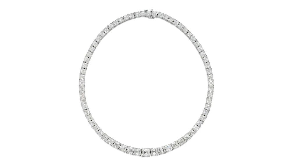 Аукционный дом предложил это бриллиантовое колье без резерва. Оно содержит 67 бриллиантов огранки изумруд, цвета от H до I, весом от 1,01 до 3 карат – общим весом 77,80 карата.