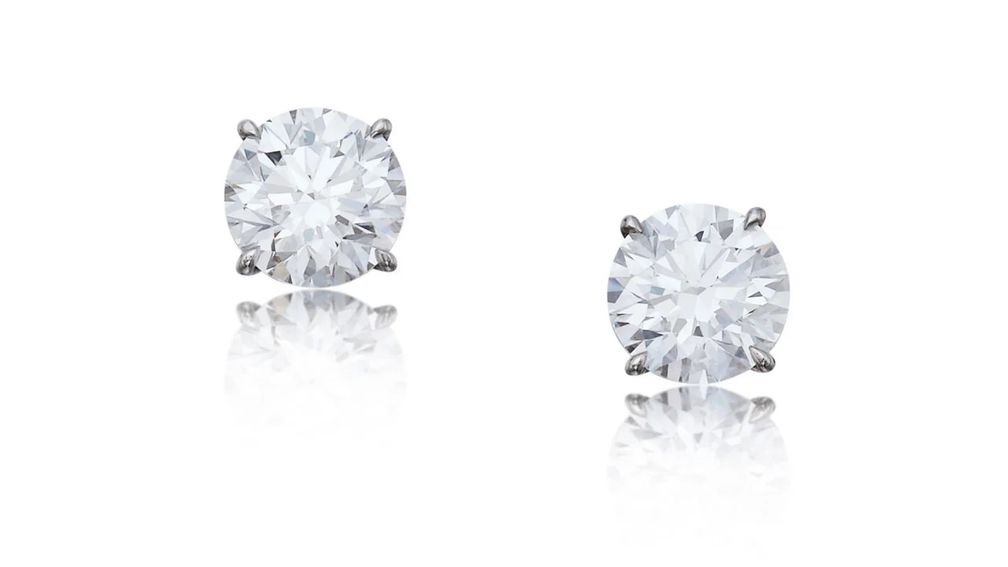 Эти серьги украшены двумя круглыми бриллиантами цвета D, один из которых – чистоты VVS2, весом 3,20 карата, а другой – чистоты VVS1, весом 3,33 карата.
