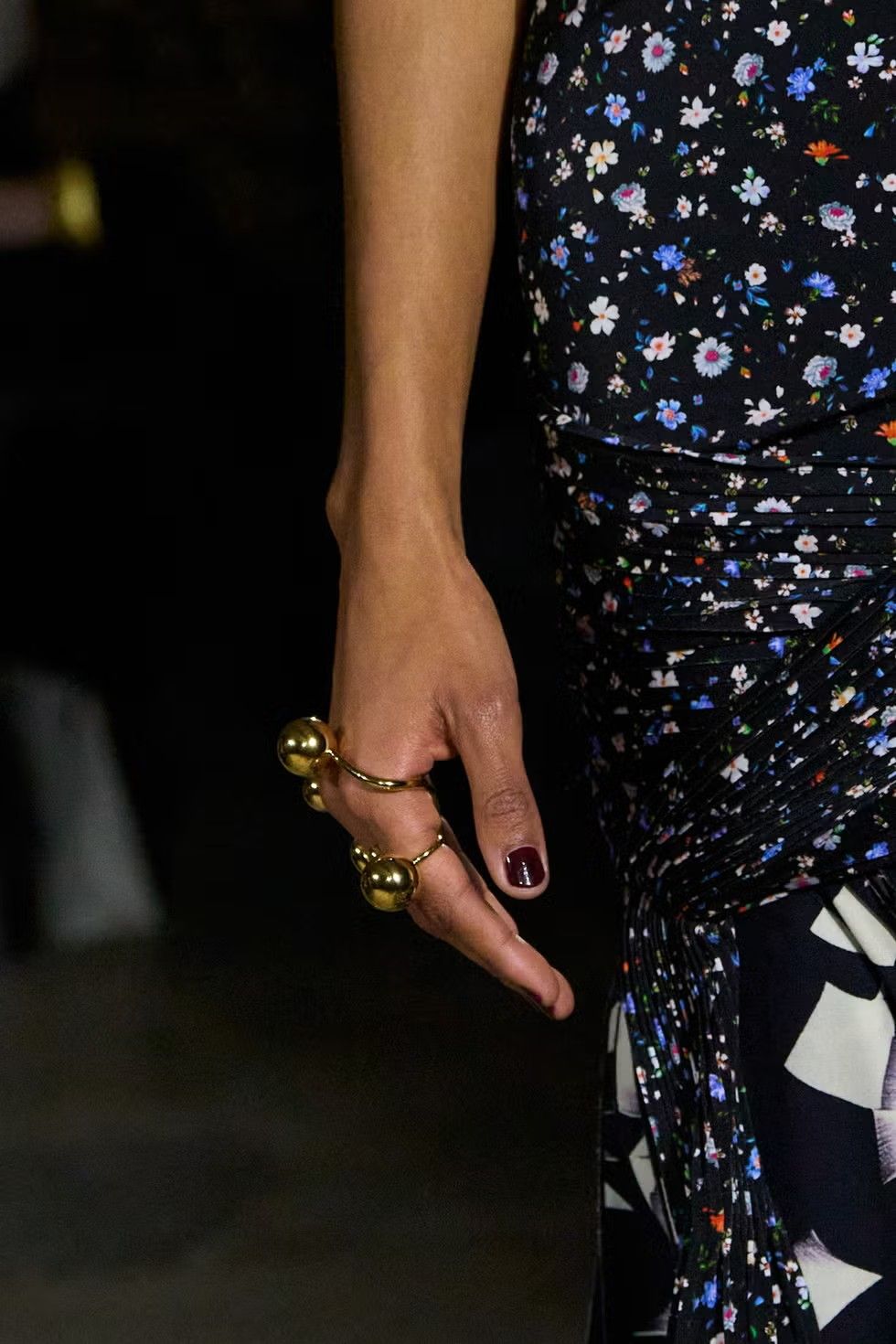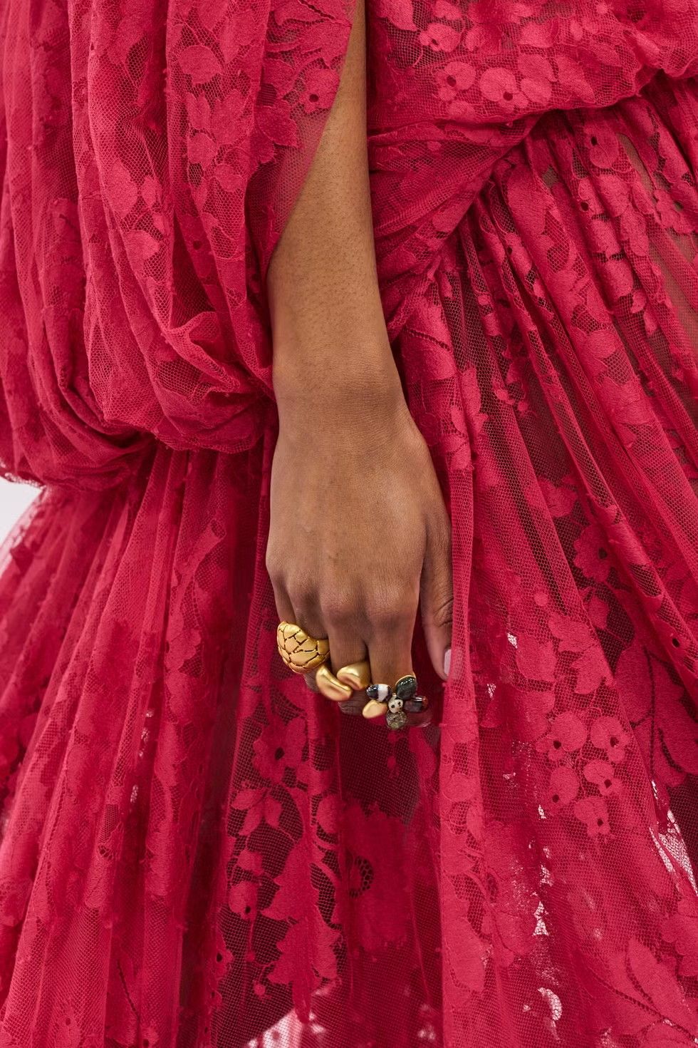Показы весенне-летних коллекций 2026 года сочетают объемные кольца с женственными и воздушными образами. Giorgio Armani и Zimmermann представляют плавные линии, отдавая предпочтение каплевидным формам, которые органично сочетаются с рукой, меньше напоминая стиль ар-деко и больше соответствуя современным тенденциям.