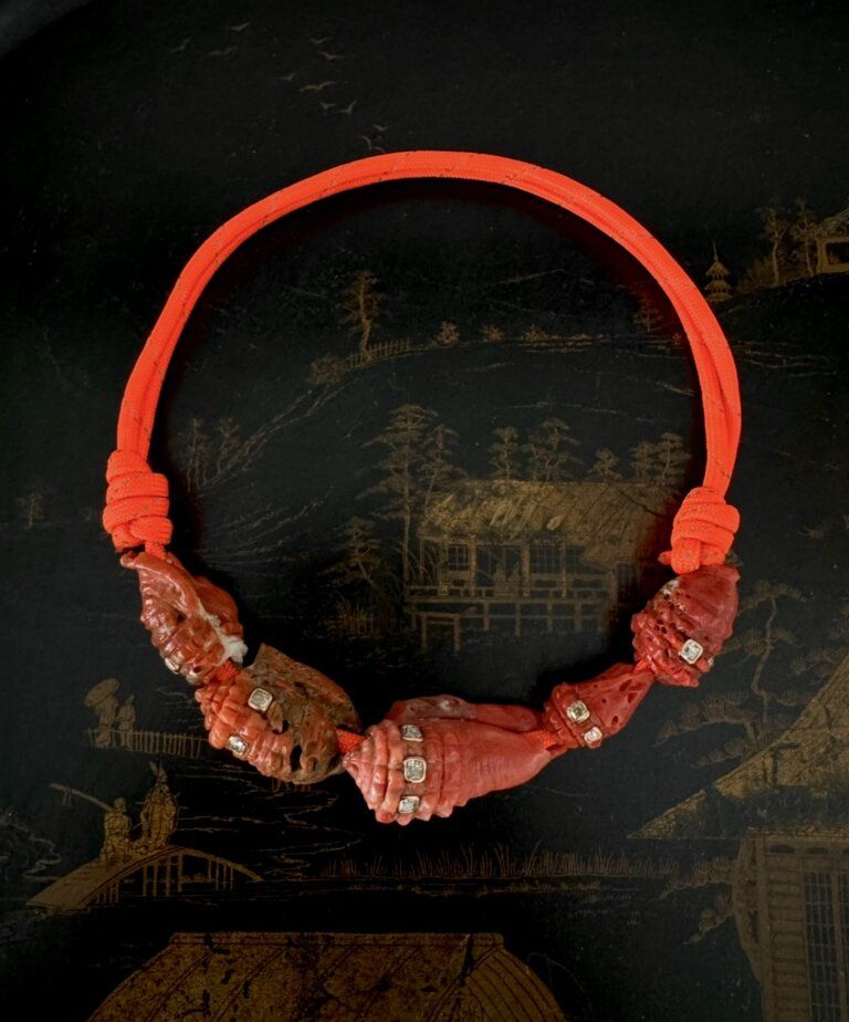 Известная своим бесстрашным использованием альтернативных материалов, Сильвия Фурманович привнесла дерево, бамбук, лак и конскую гриву в свои необычные украшения. Она придумывает креативные способы включить их в свои ювелирные изделия и ищет мастеров, которые специализируются на каждом материале.