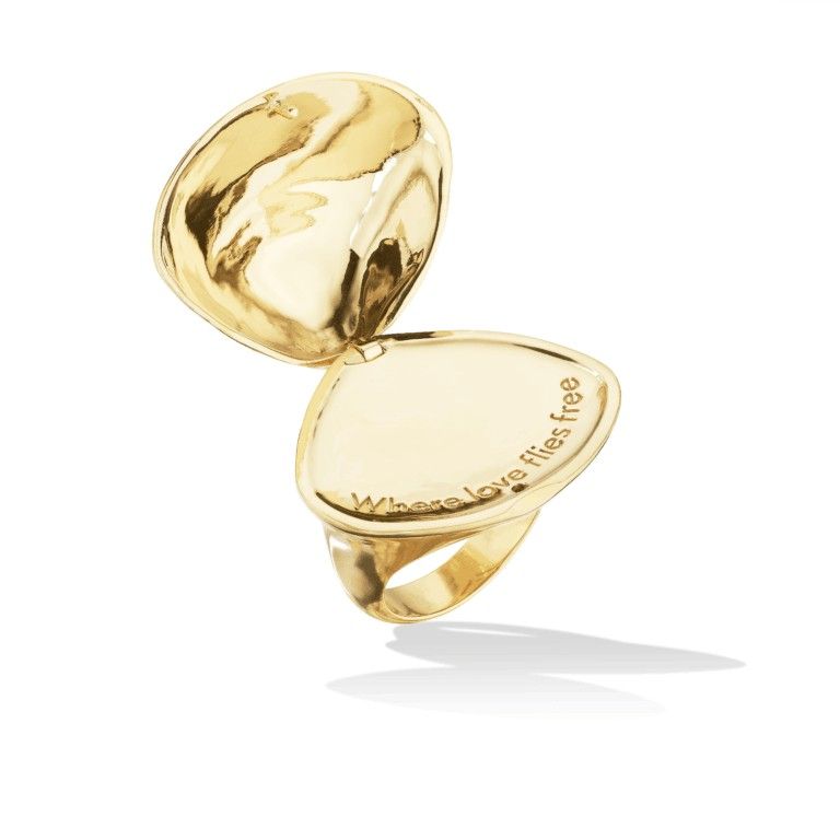 Великолепные дизайны включают ожерелья и браслеты с несколькими ракушками и более крупные изделия с одной большой ракушкой. Есть даже кольцо с большой ракушкой, которая открывается, как настоящая двустворчатая раковина. Внутри этого «коктейльного кольца» выгравировано: «где любовь летает свободно».
