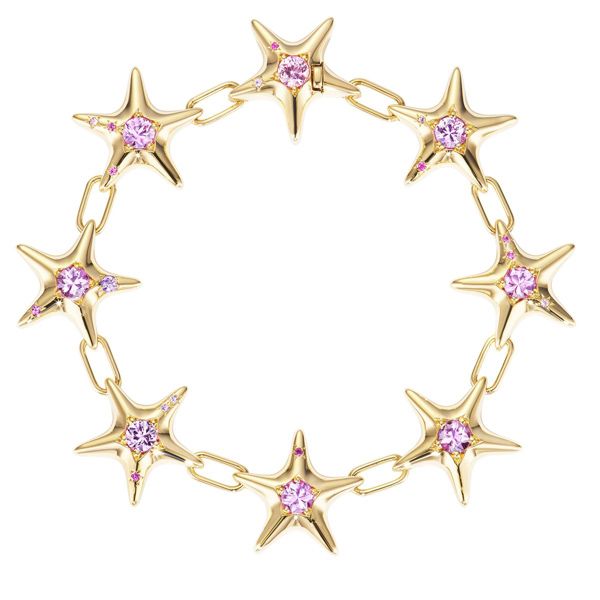 Браслет Starfish от Meluzza из 18-каратного желтого золота с розовыми и пурпурными сапфирами: