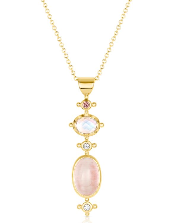 Ожерелье Celestial Wonders от Zei Jewels из 18-каратного желтого золота с розовым перламутром и бриллиантами: