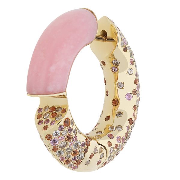 Серьги Oera от Tabayer из 18-каратного желтого золота Fairmined с розовым опалом и сапфирами:
