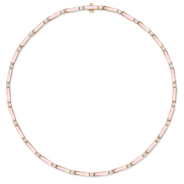Колье Honey Linked от Melissa Kaye из 18-каратного розового золота с пастельно-розовой эмалью и бриллиантами: