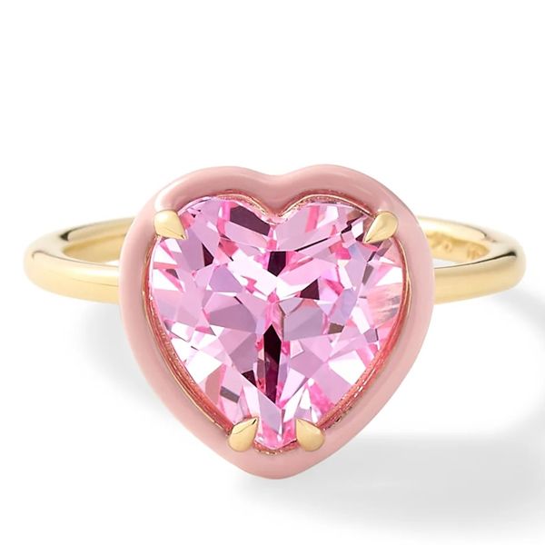 Кольцо Heart от Alison Lou из 14-каратного желтого золота с эмалью и розовым сапфиром 3,16 карата:
