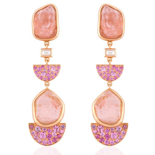 Длинные серьги Sequence от Clara Chehab из 18-каратного розового золота с необработанным морганитом, розовым сапфиром и бриллиантами: