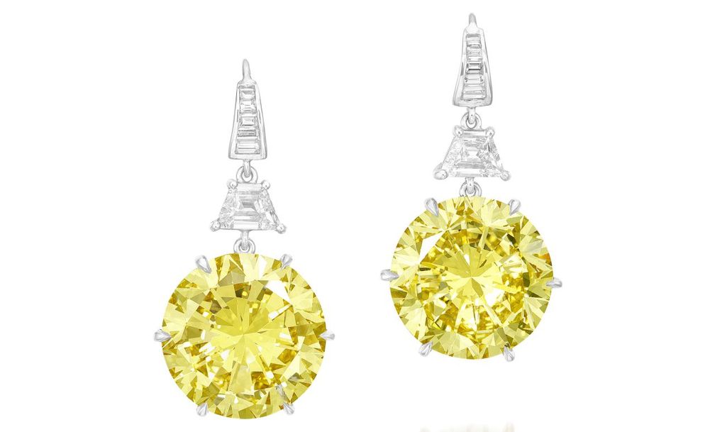Серьги с двумя желтыми бриллиантами весом 9,69 и 9,71 карата были проданы в пределах оценки за $ 536 488.