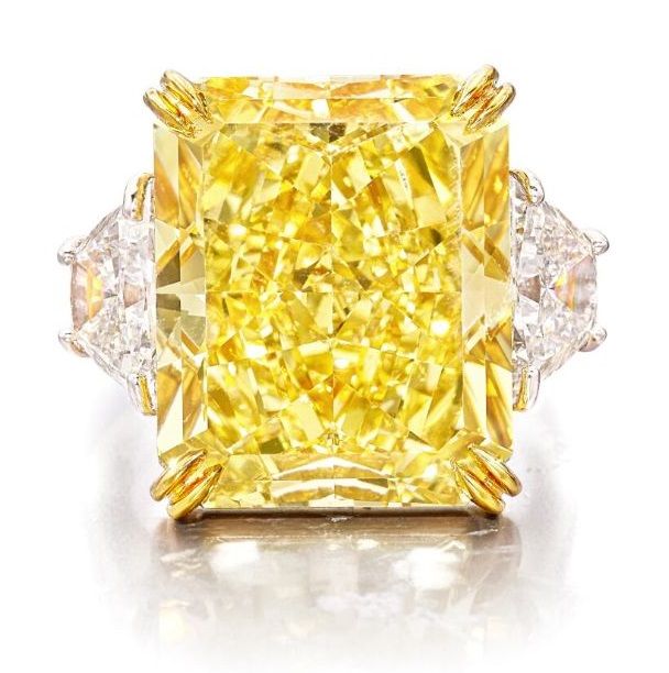 Аукционный дом Sotheby’s оценил до 12 миллионов гонконгских долларов ($ 1,5 млн) это кольцо, украшенное бриллиантом весом 21,35 карата, фантазийного ярко-желтого цвета, чистоты VS2.