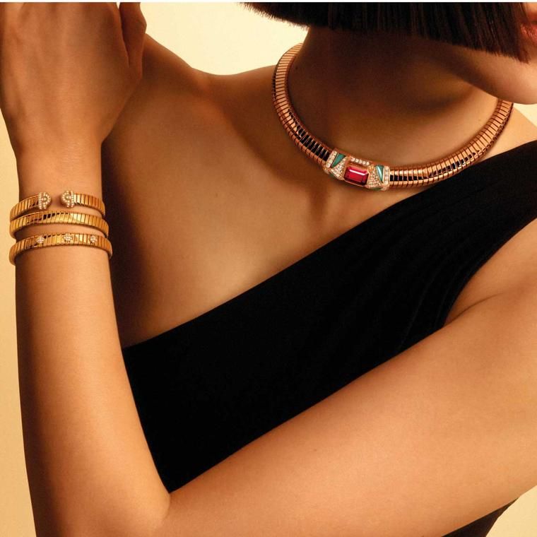 Tubogas поражает новыми вариациями культового стиля, сочетающимися с самыми известными дизайнами Bulgari, и большим количеством ярких драгоценных камней.