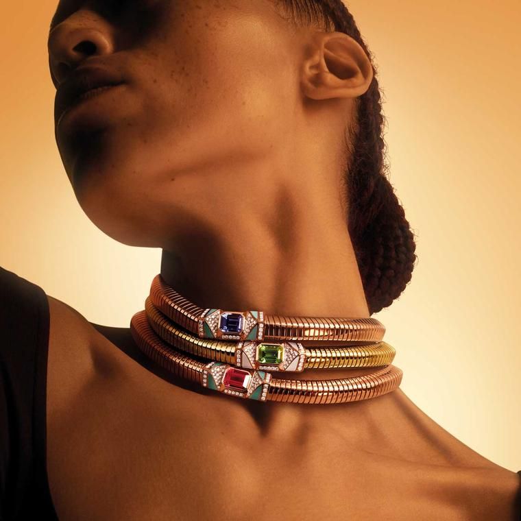 Чокеры Tubogas с рубеллитами, танзанитами или цаворитами от Bulgari: