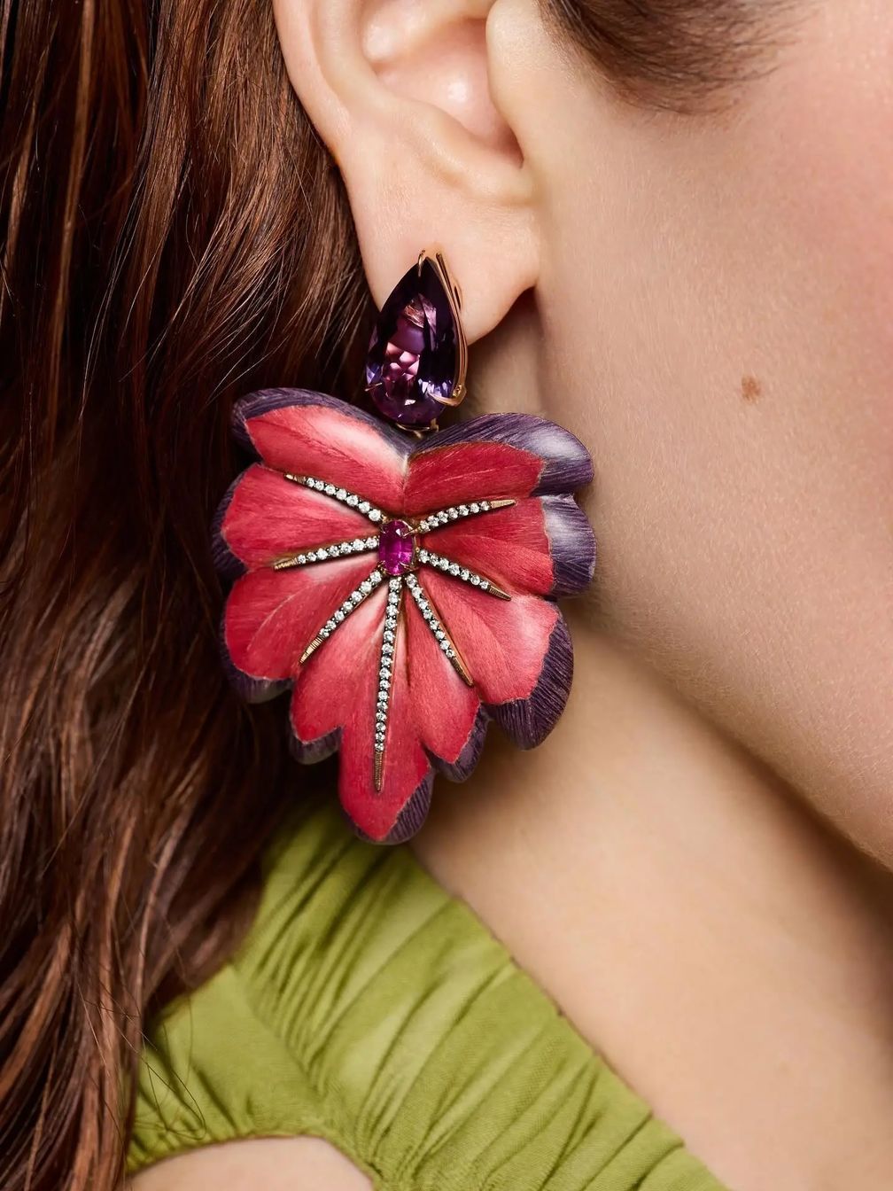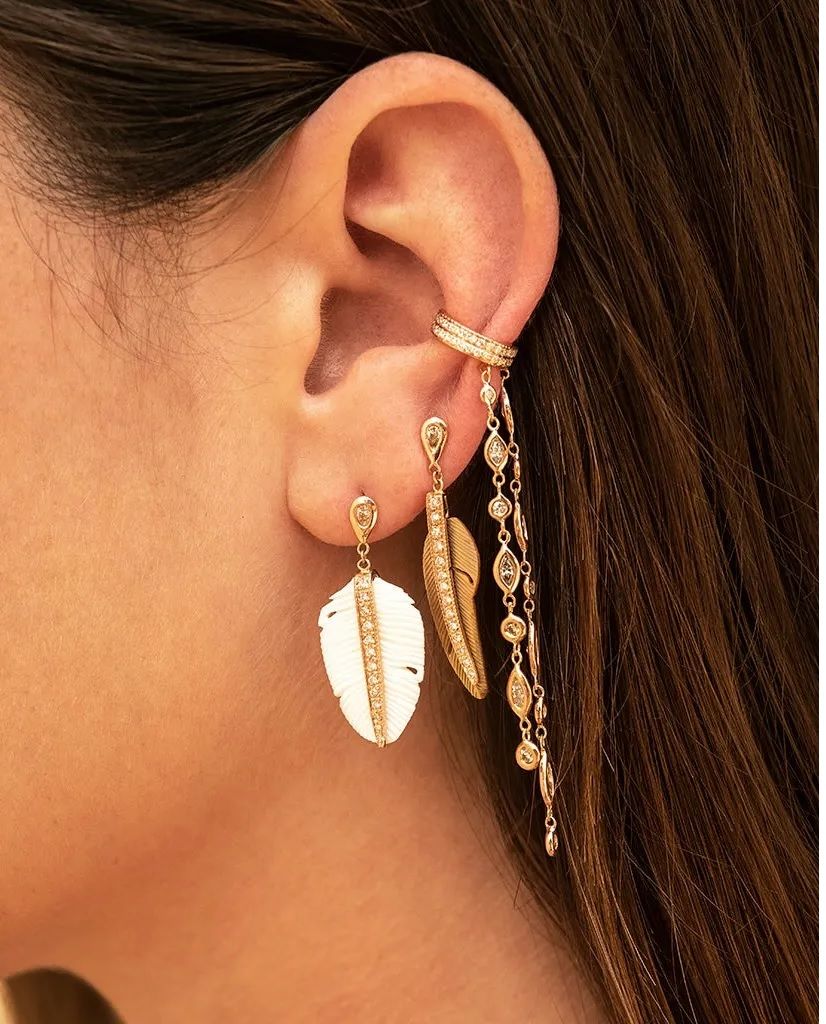 В последней коллекции Джеки Айше представлены деревянные серьги и подвески, вырезанные в виде листьев с бриллиантовыми вставками, – процесс, требующий искусного мастерства. «Дерево невероятно нежное в работе, – сказала она. – Каждое изделие должно быть изготовлено с особой тщательностью, потому что мы используем такой легкий, органический материал, отдавая должное прочности камня. Но именно это делает его таким особенным».