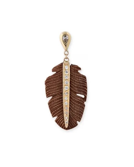 Серьга-гвоздик Teardrop Diamond & Pave Wood Feather Drop от Jacquie Aiche: