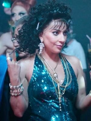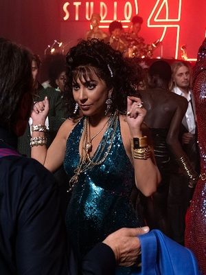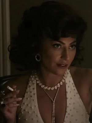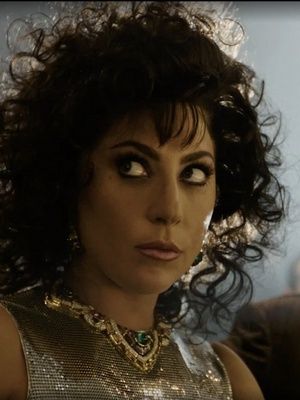 Самый эпатажный аутфит в «Доме Гуччи» был показан в эпизоде со светской вечеринкой. В этой сцене на главной героине было максимум блеска: платье, расшитое пайетками, и изобилие украшений из золота. Одними из них были ожерелья в виде длинных цепочек. Всего на шее Патриции было около пяти изделий разного дизайна.