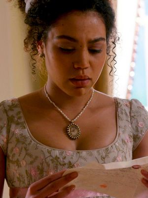 В эпоху Регентства женщины выходили в свет в платьях с глубокими вырезами. Чтобы подчеркнуть ключицы и зону декольте, они дополняли образы ожерельями с большим количеством вставок и декоративных элементов. В сериале тоже постоянно встречаются похожие аутфиты с массивными колье. Одним из самых эффектных из них стал образ леди Данбери, когда она появилась на балу в ожерелье, щедро усыпанном бриллиантами. Также в ажурных колье часто щеголяли дамы из семейства Фезерингтон.