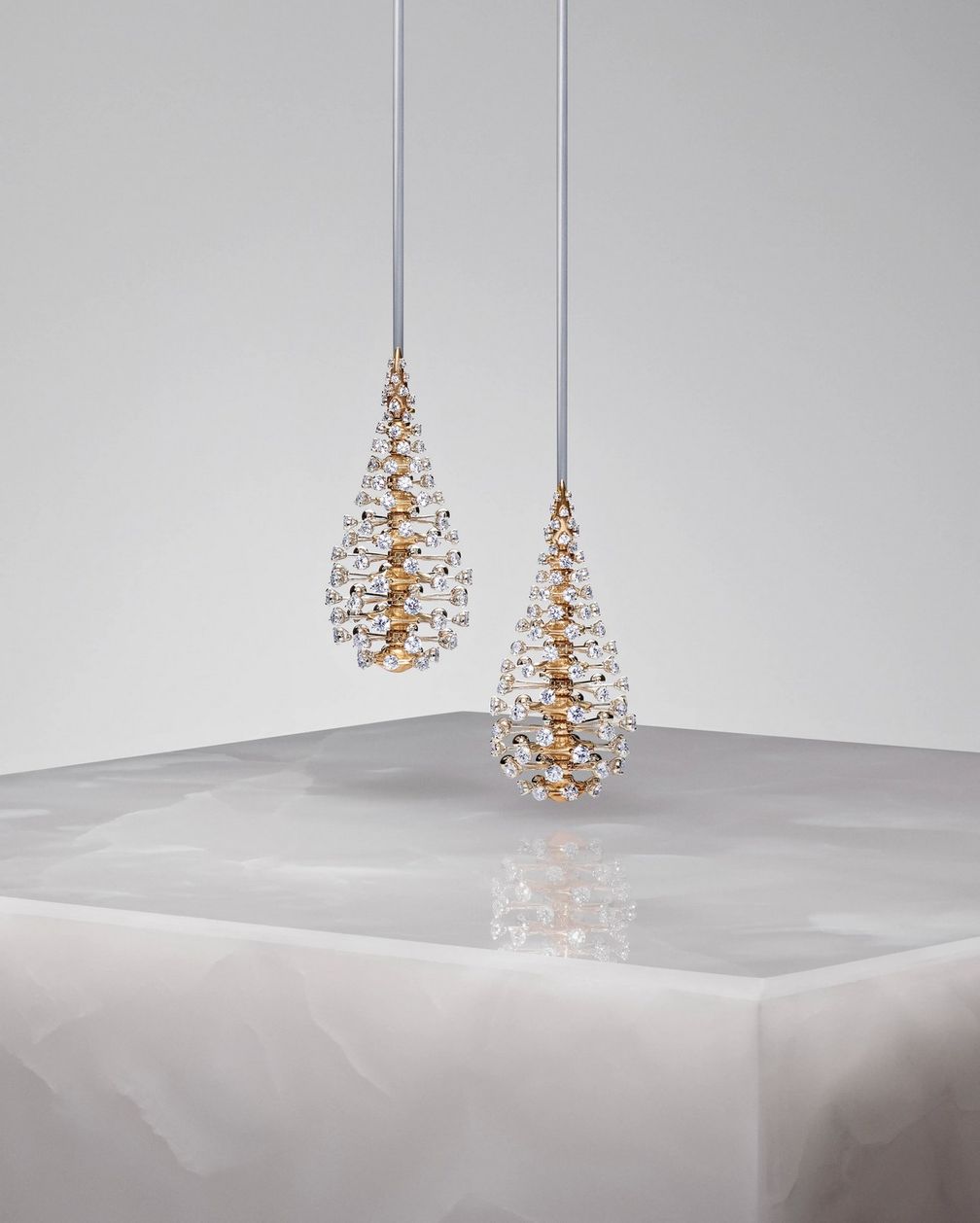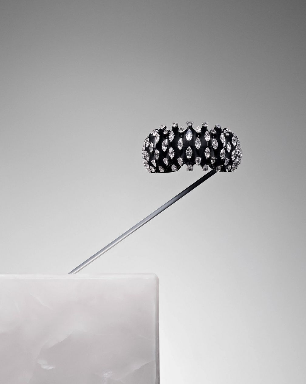 В коллекции Wish Кулис вдохновлялся колючим, но мягким характером одуванчика, его «шипы» здесь воплощены в бриллиантах, оправленных в золото на алюминии. Пушистые головки семян становятся бриллиантами необычной огранки мовал (смесь овальной огранки и огранки маркиз).