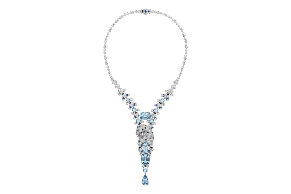 18-каратное белое золото, аквамарины, лазурит, оникс, изумруд и бриллианты: