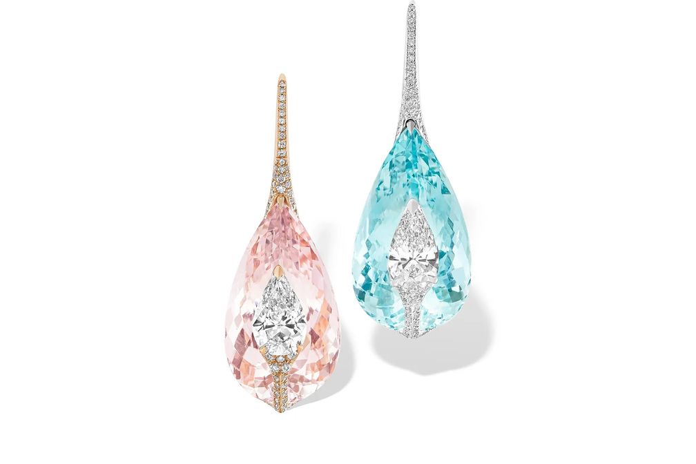 Серьги Kissing с бриллиантами, морганитом и аквамарином: