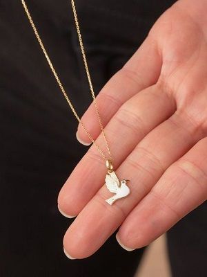 Подвески и кулоны – самые распространенные изделия, где используют символ голубя. Подвески могут быть массивными, инкрустированными цветными камнями, тогда их лучше носить с любой однотонной одеждой, свитером или платьем крупной вязки.