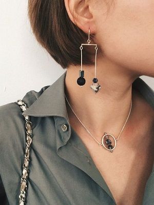 - Особого внимания заслуживают изделия с черно-белым обсидианом, так как они выглядят необычно и ажурно. К примеру, висящие серьги, кулоны, кольца или даже броши. Украшения с крупными камнями выбирают чаще солидные дамы, а с миниатюрным самоцветом – молодые изящные особы.