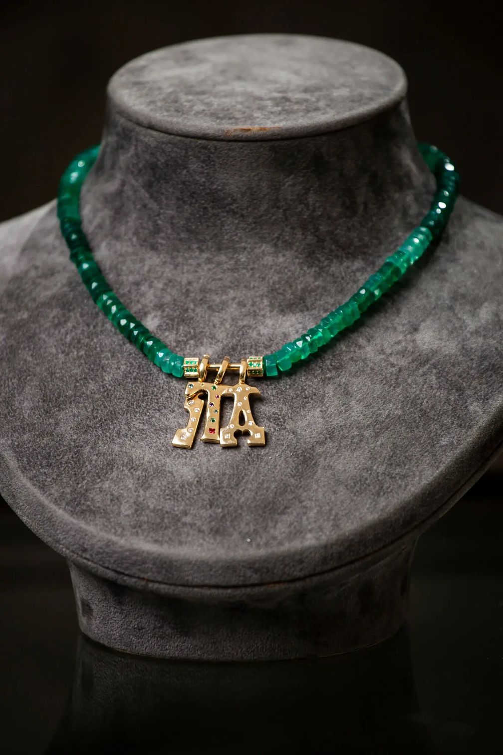 «Мы всегда хотели сделать инициалы, – сказала Капо. – Меня всегда привлекала эта баскская типографика, но я не была уверена, подойдет ли она для нанесения на золото или на ожерелье. Мы потратили почти два года, совершенствуя, беря разные буквы и стили, играя с каждым из них».