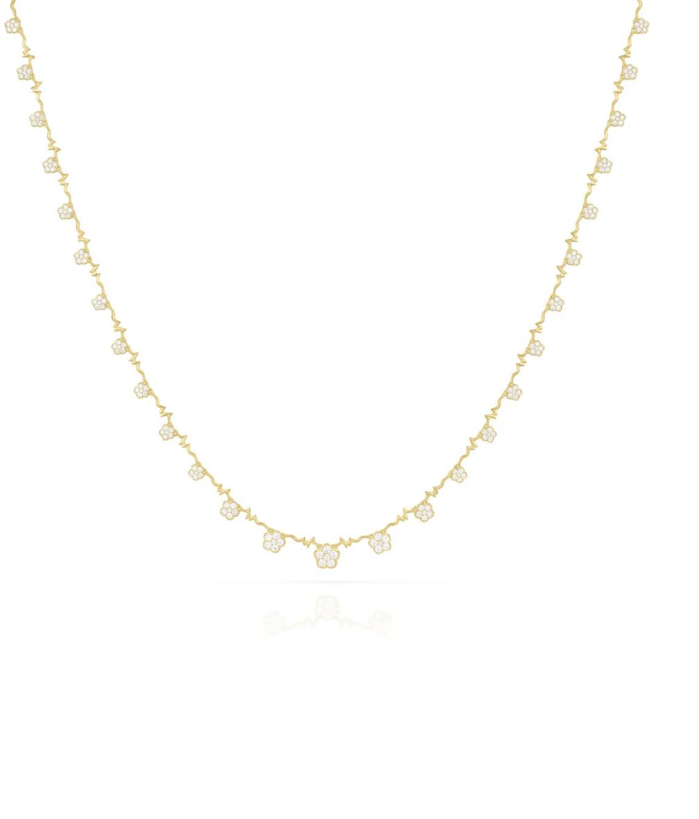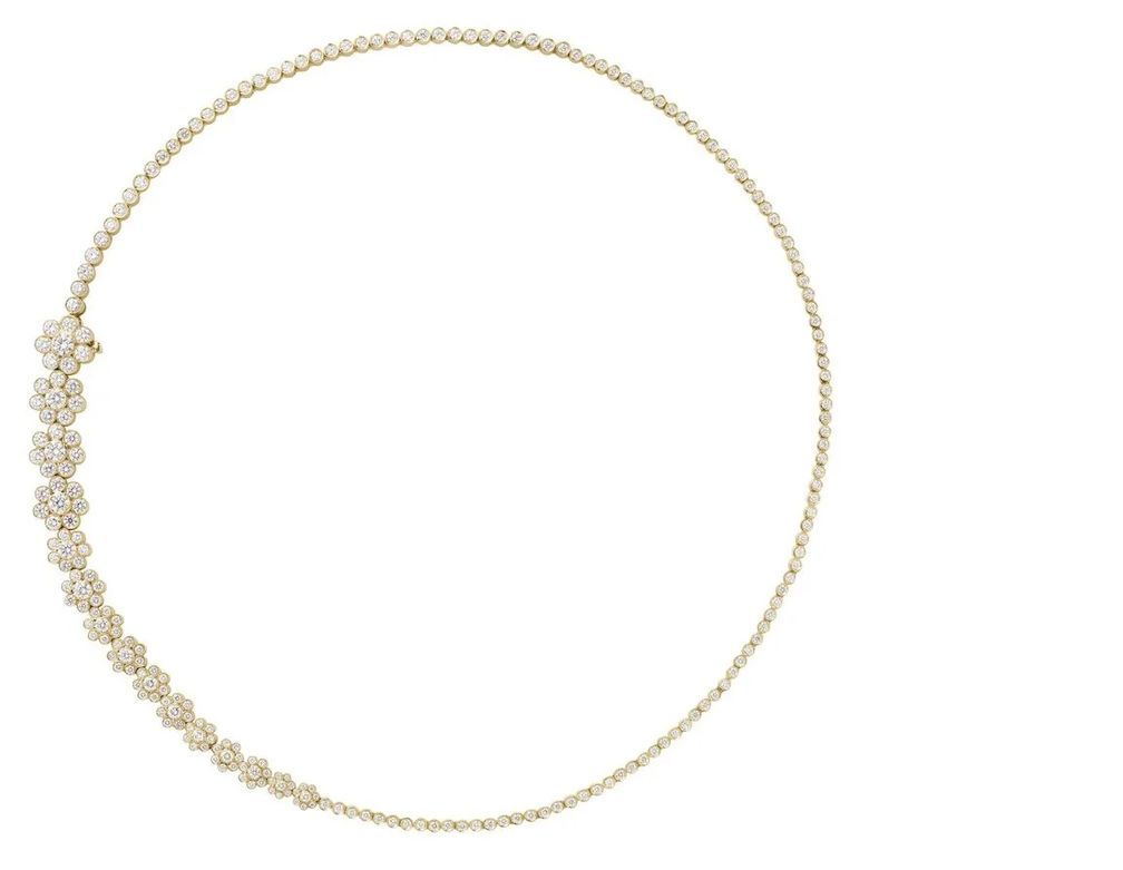 Ожерелье Fleur de Tennis от Sophie Bille Brahe – это вариация ее классического теннисного ожерелья, добавляющая цветочную нотку и немного больше блеска на вашу шею.
