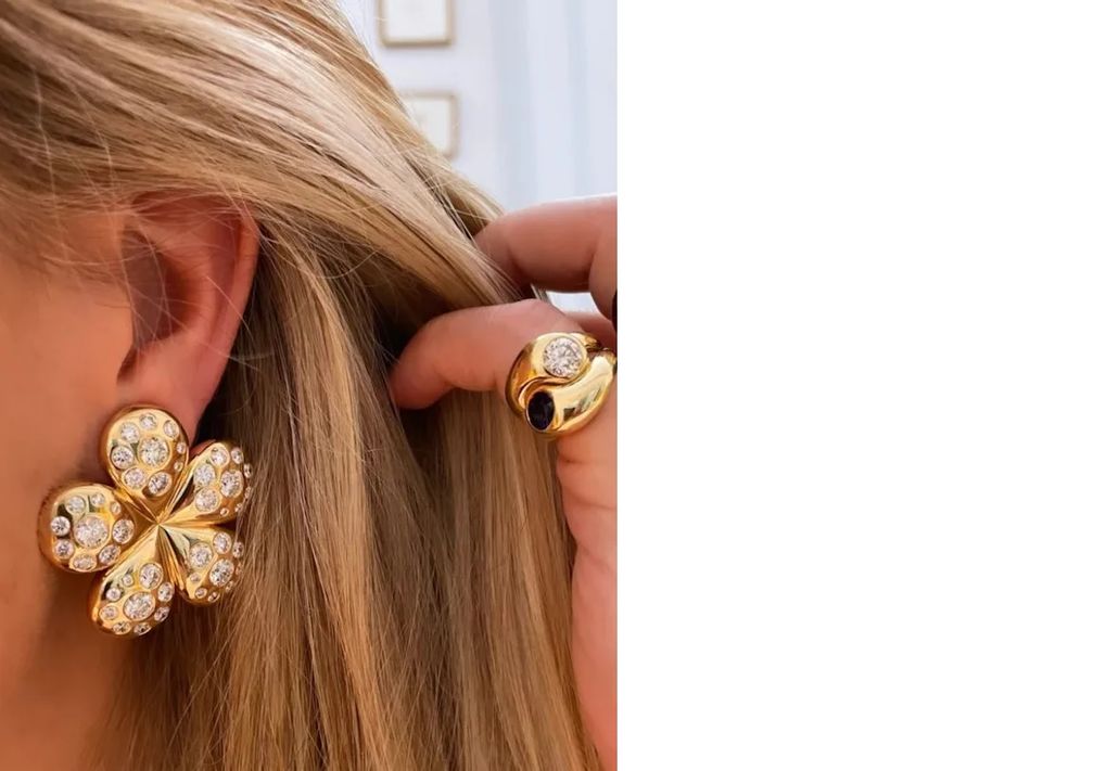Эти винтажные золотые серьги в виде подсолнухов с бриллиантами из коллекции Susan Eisen Vintage Collection идеально подходят для эстетики садового стиля.
