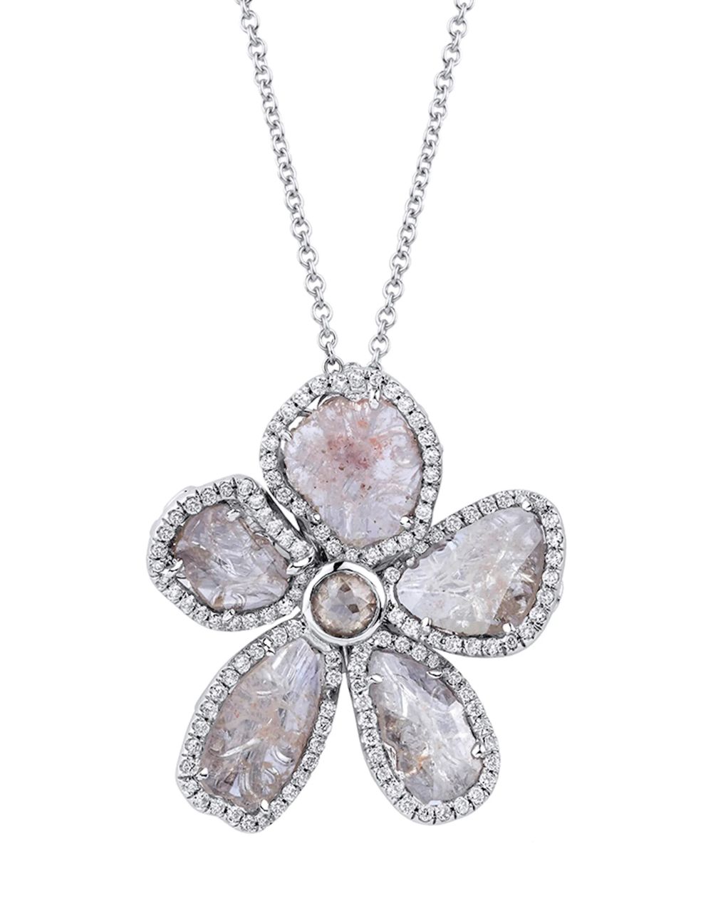 Цветные бриллианты? Уникальная подвеска Michael M из серо-розовых бриллиантов, окруженная 190 белыми природными бриллиантами, вдохновлена цветами.