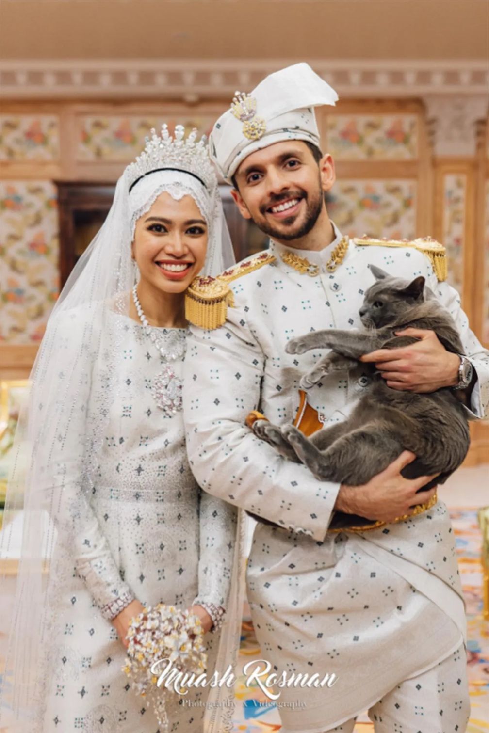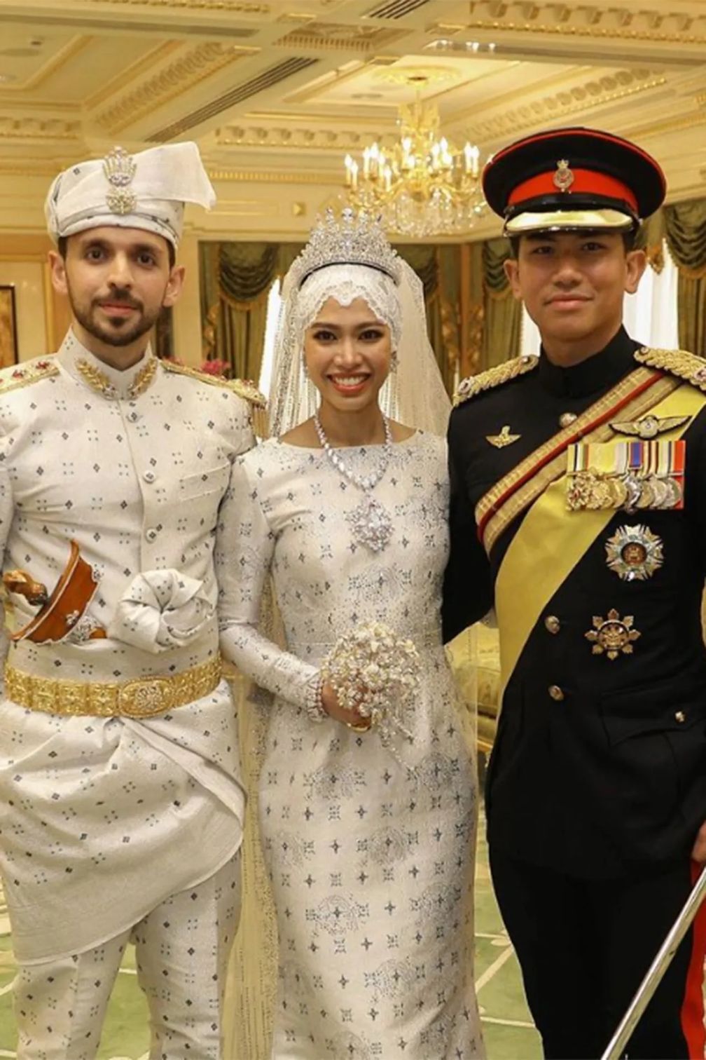 Образ невесты дополнил один из бриллиантовых букетов королевской семьи. Как сообщается, дом Болкиах владеет коллекцией, которая используется всеми невестами расширенной семьи с 1990-х годов.