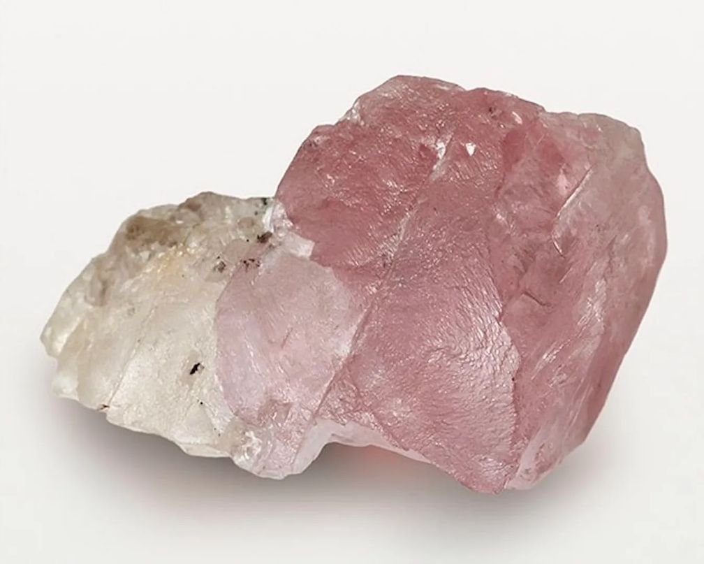 Затем, по удивительному геологическому стечению обстоятельств, образовался новый алмазный материал, который прикрепился к первоначальному кристаллу, но на этот раз не подвергался такому сильному давлению. Результат? Цельный необработанный алмаз с двумя половинками: одна ярко-розовая, другая совершенно бесцветная, сплавленные силами природы.