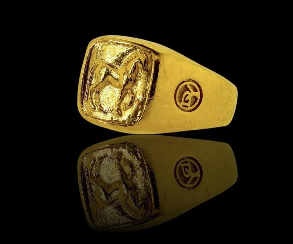 Компания David Yurman представила коллекцию Petrvs примерно в 2010 году, черпая вдохновение из древних монет и каменных резных изображений. В дизайне представлены различные животные, в том числе лошади. Величественный конь на этом кольце из 22-каратного золота изображен с поднятым копытом и развевающейся гривой, вызывая ассоциации с сокровищами античности.