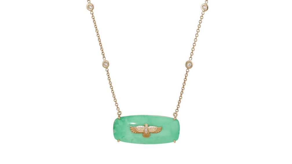 Ожерелье из 14-каратного желтого золота с бриллиантами и пластиной из хризопраза: