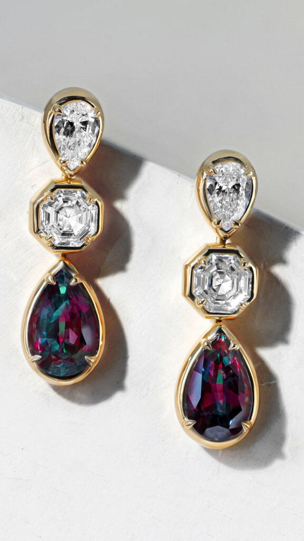 Феноменальные, меняющие цвет александриты остаются отличительной чертой бренда, однако коллекции также подчеркивают яркие оттенки турмалинов параиба, сапфиров, рубинов и изумрудов, а также завораживающее сияние лунных камней, с акцентами бриллиантов, мерцающих на полированном металле.