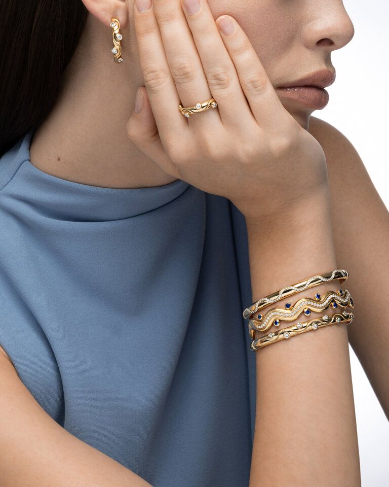 Основываясь на глубоком знании языка классического дизайна, бренд воплощает современную чувствительность в нюансах изгибов и линий, обрамляющих изысканные драгоценные камни. Вдохновленные средиземноморской архитектурой, танцами и небесными мотивами, детали изделий отражают влияние моды, искусства и музыки.