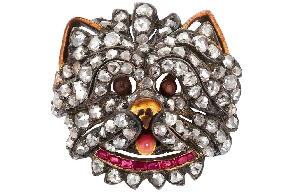 Брошь в виде собаки, около 1890 г., продана на аукционе в 2023 г.: