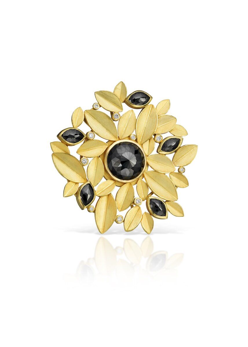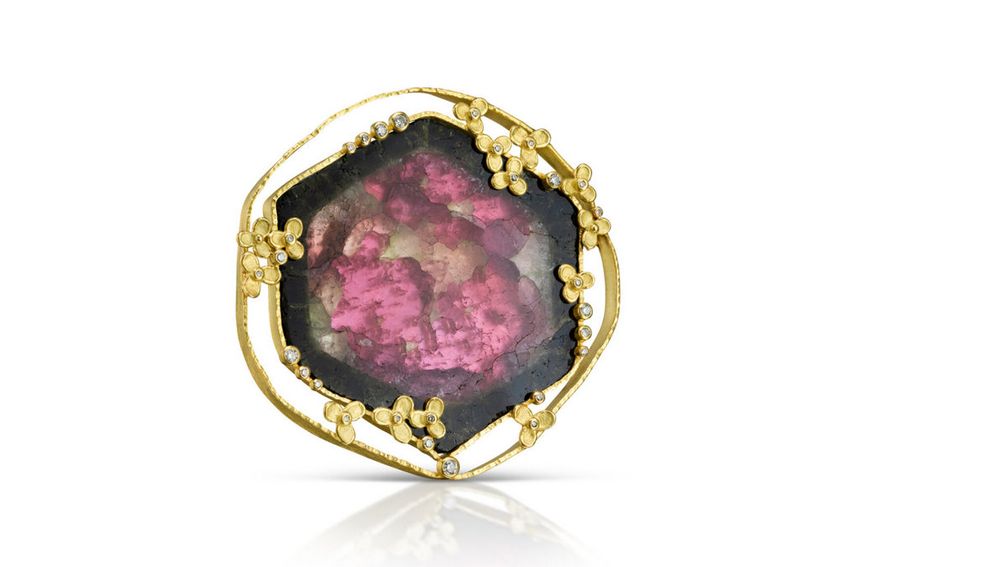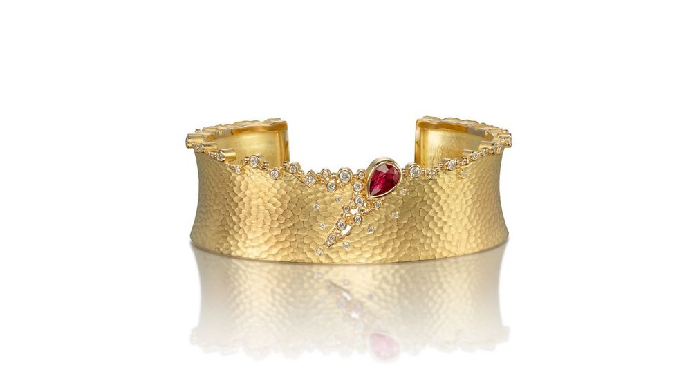 Богатые текстуры и контрасты поверхностей создают игру света и тени, усиливая целостную красоту дизайнов. Каждый камень, включенный в работу, отбирается вручную и часто диктует направление творческого процесса. Начиная с линейных рисунков и цветовых изображений, камень, драгоценный металл, художник, производитель и ценитель работают в унисон, чтобы достичь идеального результата.