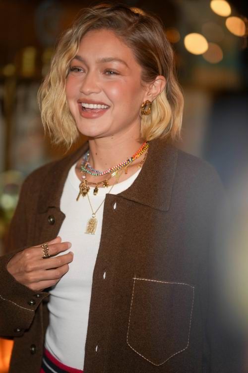 Модница Джиджи Хадид без особых усилий сочетает золотые шармы, в том числе сердечко с ключиком, звезду и замысловатую прямоугольную подвеску, с разноцветными нитями бусин и массивными золотыми серьгами-обручами.