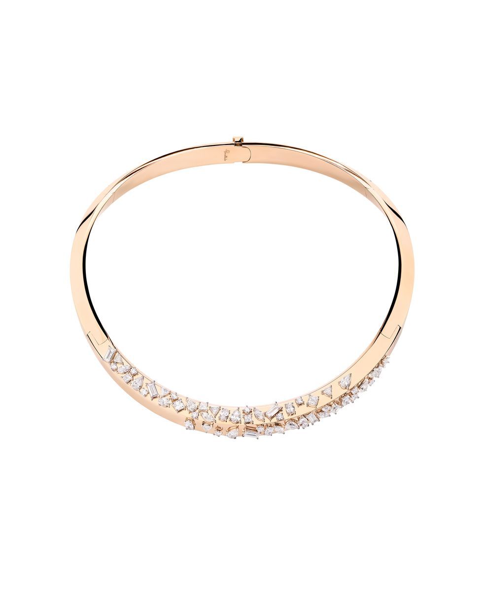 Достижения этого колье Terrazza Duomo заключаются в его тонкой инженерной проработке – оно идеально сидит на ключице владельца, а также в том, как оно поднимает смелую фирменную палитру золота и бриллиантов Pomellato в сферу высокого ювелирного искусства благодаря огранке и дизайну.