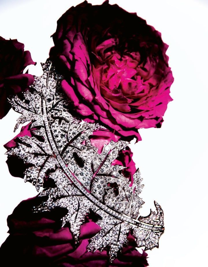 Брошь Chardon от Boucheron из коллекции Untamed Nature выполнена из белого золота и бриллиантов: