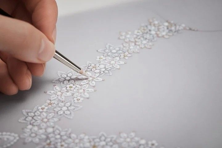 Драгоценность должна быть визуально хрупкой, но не до такой степени, чтобы сломаться. Мастера использовали технику fil-couteau и чеканку, чтобы сделать металл максимально легким. Им нужно сбалансировать гибкость с жесткостью. Найти этот баланс — одна из технических сложностей коллекции. Я хотела создать кружево и сетку в форме цветов. Так приятно играть с этими цветочными элементами, с природой.