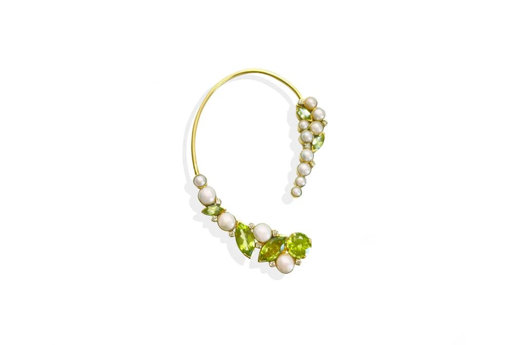 Кафф с жемчугом, хризолитом и бриллиантами: