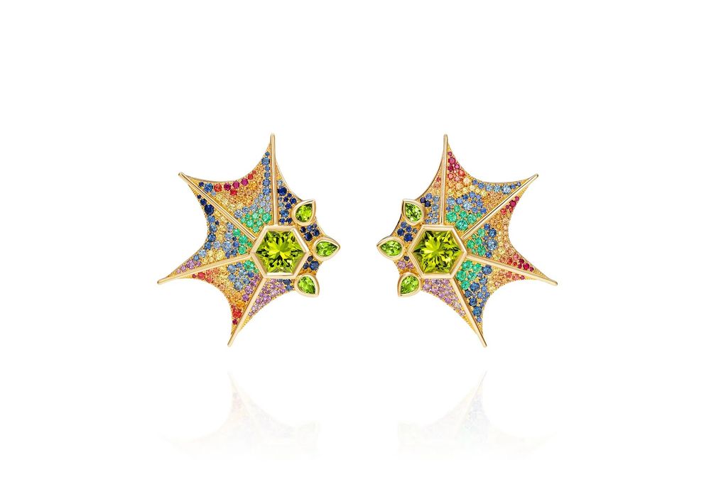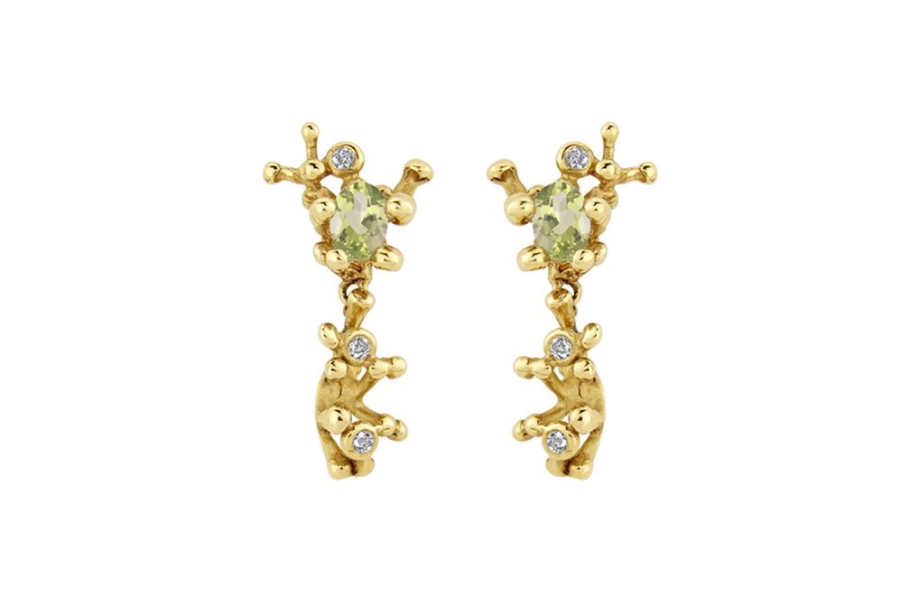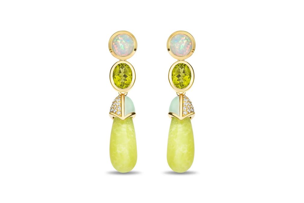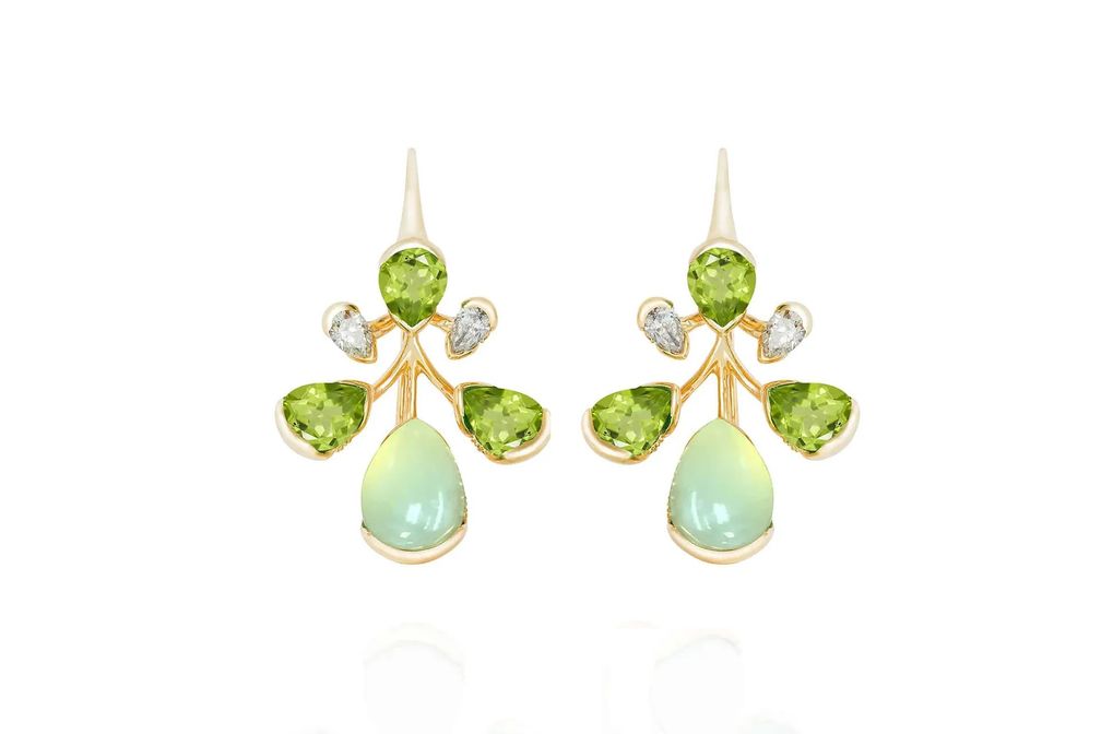 Серьги Corolla из 18-каратного желтого золота с бриллиантами, хризолитом и кальцитом: