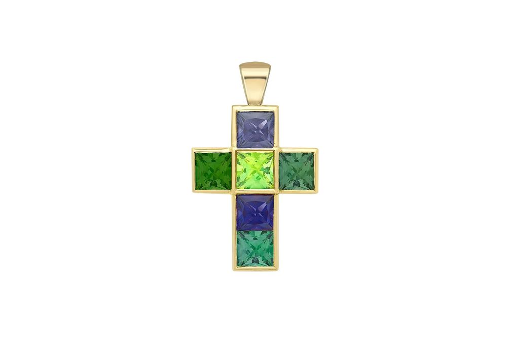 Подвеска в виде креста из зеленого турмалина и хризолита:
