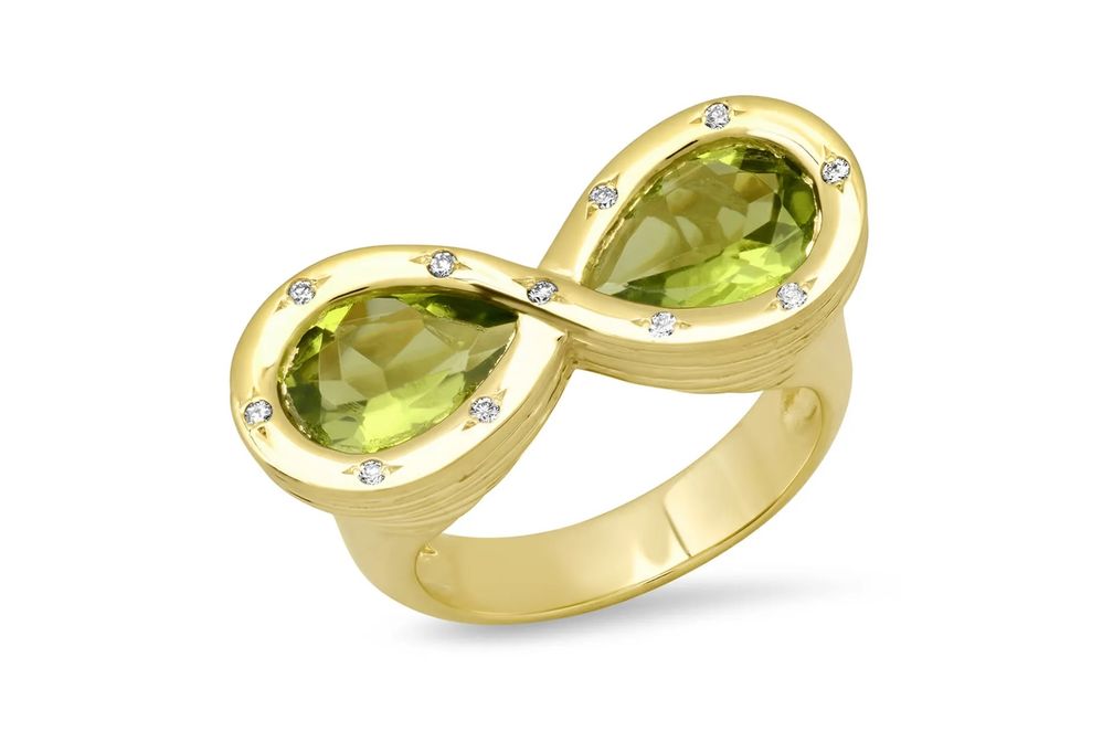 Кольцо из 14-каратного желтого золота с хризолитом и бриллиантами: