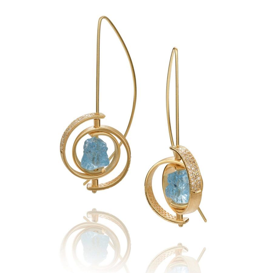 Золотые серьги Ceres от Martha Seely украшены бриллиантами и необработанным аквамарином: