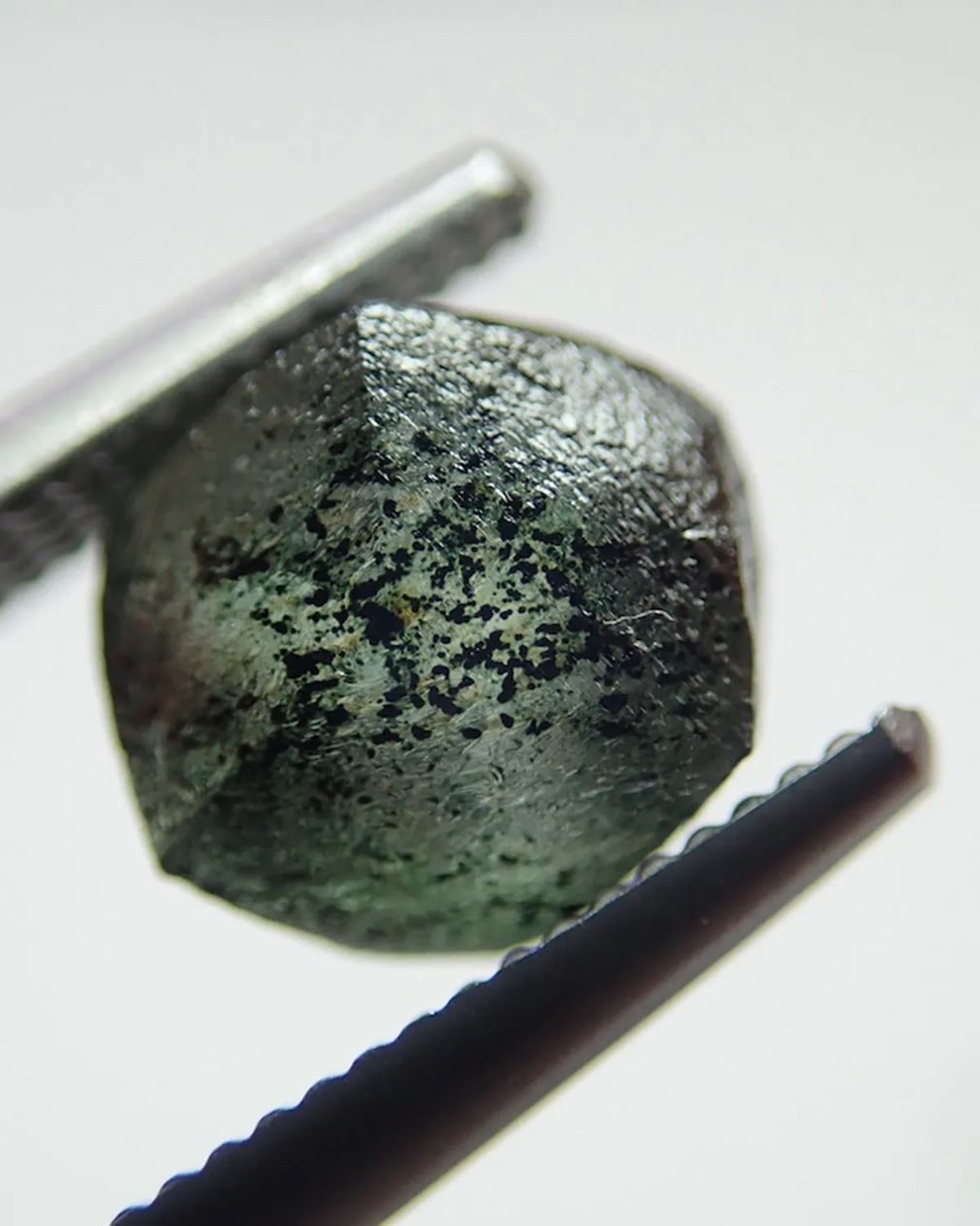 Радиационные пятна обычно проникают в алмаз лишь на несколько микрометров, и эта зеленая «корка» может быть потеряна при огранке и полировке. Опытные огранщики планируют работу заранее, чтобы сохранить зеленые пятна настолько, насколько это возможно, для контроля цвета и общего вида граней.