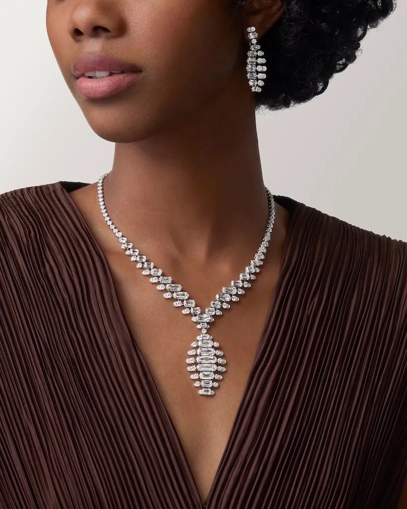 Выделиться из толпы непросто, но сет из колье и сережек Splendea с белыми бриллиантами теперь безошибочно узнаваем.
