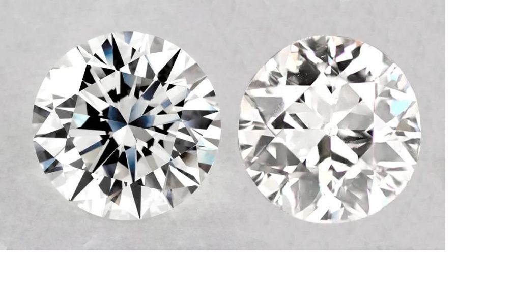 Старая европейская огранка слева. Круглая современная огранка справа